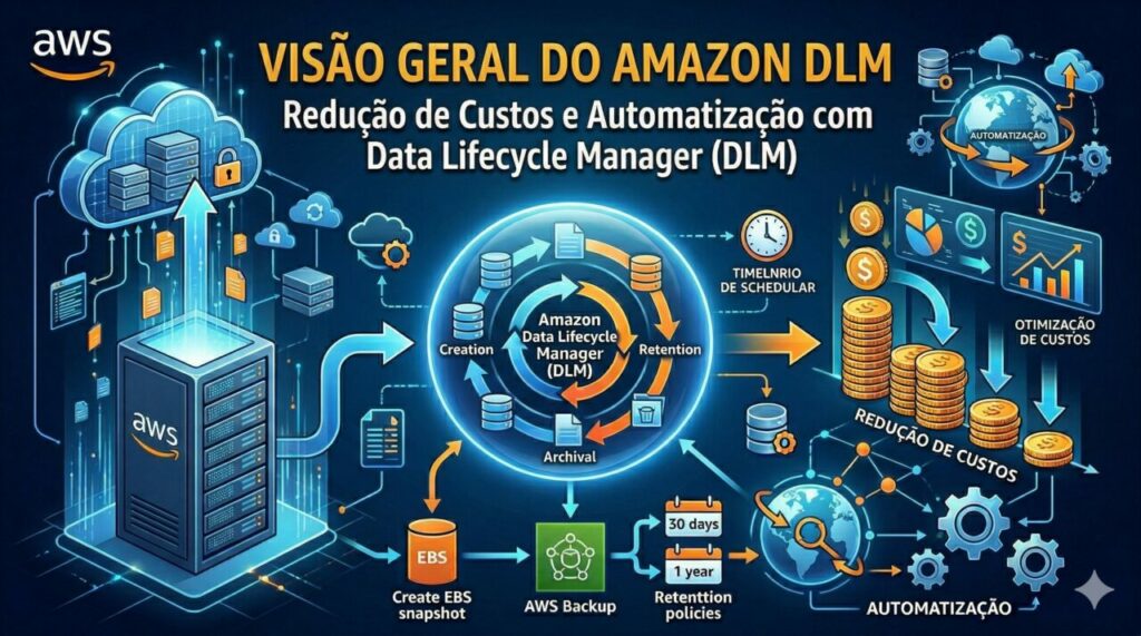 O Amazon Data Lifecycle Manager (DLM) é um serviço da AWS que automatiza a criação, retenção e exclusão de snapshots do EBS e AMIs.